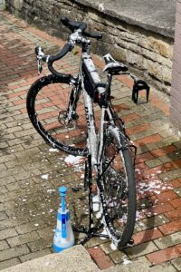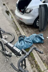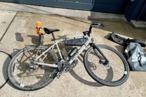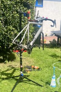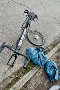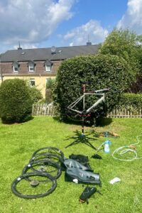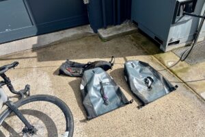 Da ist dann erst mal aussortieren, Wäsche waschen und Rad putzen angesagt. Man war das dreckig. Zum Glück ist hier neben dem Hotel ne Tankstelle mit Hochdruckreiniger, sonst hätte das Rad das ganze Auto versaut. 🫣