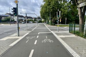 Einzig die Infrastruktur lässt teilweise zu wünschen übrig. Manche als Radweg ausgewiesene Fahrstreifen neben Hauptverkehrsstraße sind doch mehr als kläglich. Zu dem nehmen ist die denn mit dem Abstand beim Überholen, aber mal gar nicht so genau. Das ein oder andere Mal hatte ich doch Angst um meinen Ellenbogen. Dafür sind sie in der Stadt mega aufmerksam gegenüber Radfahrern. Ich weiß nicht, ob die Autos hier andere Rückspiegel haben aber bisher hat mich beim Abbiegen noch kein Auto „übersehen“.