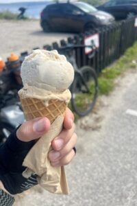 Das MiMiMi-Männchen quälte mich dann noch eine ganze Weile, so ziemlich bis Kilometer 80. Interessanterweise war es nach einer belgischen Waffel, einer Kugel Eis und einem Cappuccino komplett verstummt. Vielleicht sollte ich einfach mit dieser Kombination zum Frühstück mal anfangen. 🤣🤣