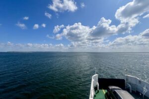 Von morgens bis abends hat alles bestens funktioniert. Ich habe die Fähren locker bekommen. Die Überfahrten waren super. Das Wetter, das sieht man glaube ich, auch auf den Fotos, war brillant. Dass ich praktisch den ganzen Tag komplett Rückenwind von circa 35 km/h hatte, setzte dem Ganzen noch das i-Tüpfelchen auf.