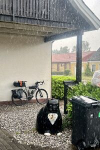 Wettertechnisch hatte ich bis kurz vor Schönberg echt Glück. Bei der ersten dicken Schauer in Dänemark konnte ich mich noch unterstellen. 5 KM vor Schönberg verließ mich jenes aber komplett und ich bin durch und durch nass geworden. Aber da es kurz vor dem Ziel war, war mir das dann auch ziemlich egal 😀😀 Wird ja auch wieder trocken. 🤪